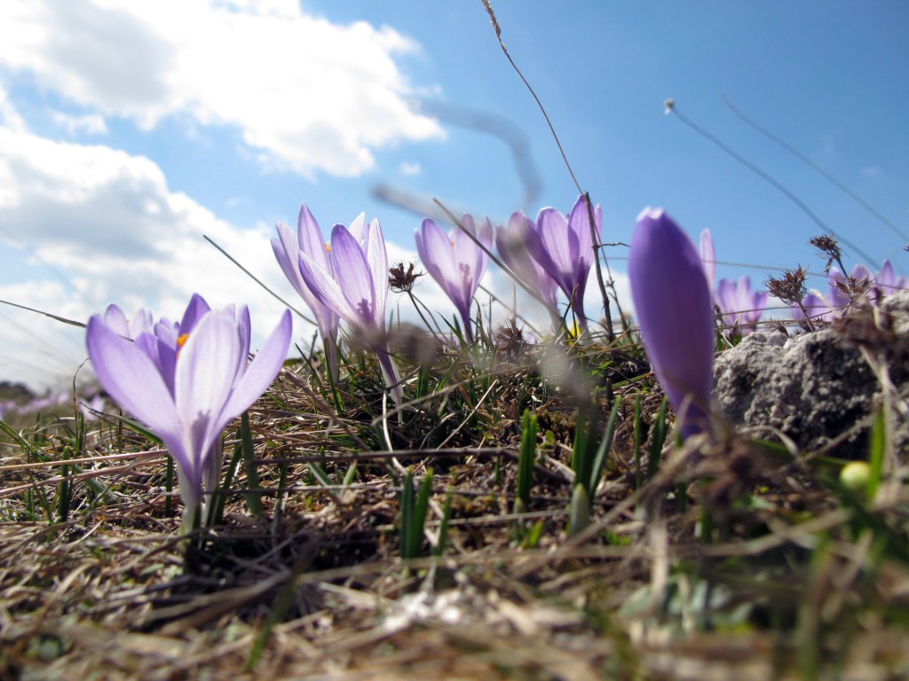 Se ti capita di passarci in questo periodo, la natura è generosa: la neve c’è ancora ma è più che altro un ricordo, il colore che spicca oltre al  verde della vegetazione giovane è il lilla dei crochi.