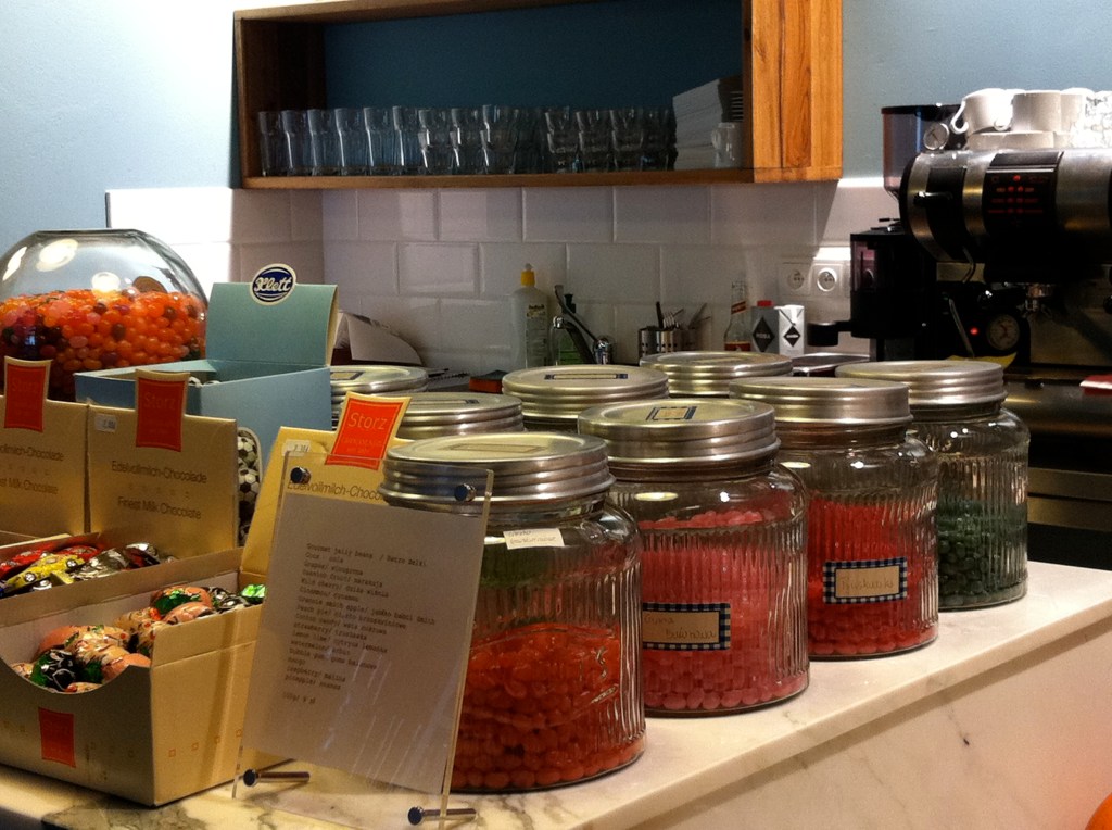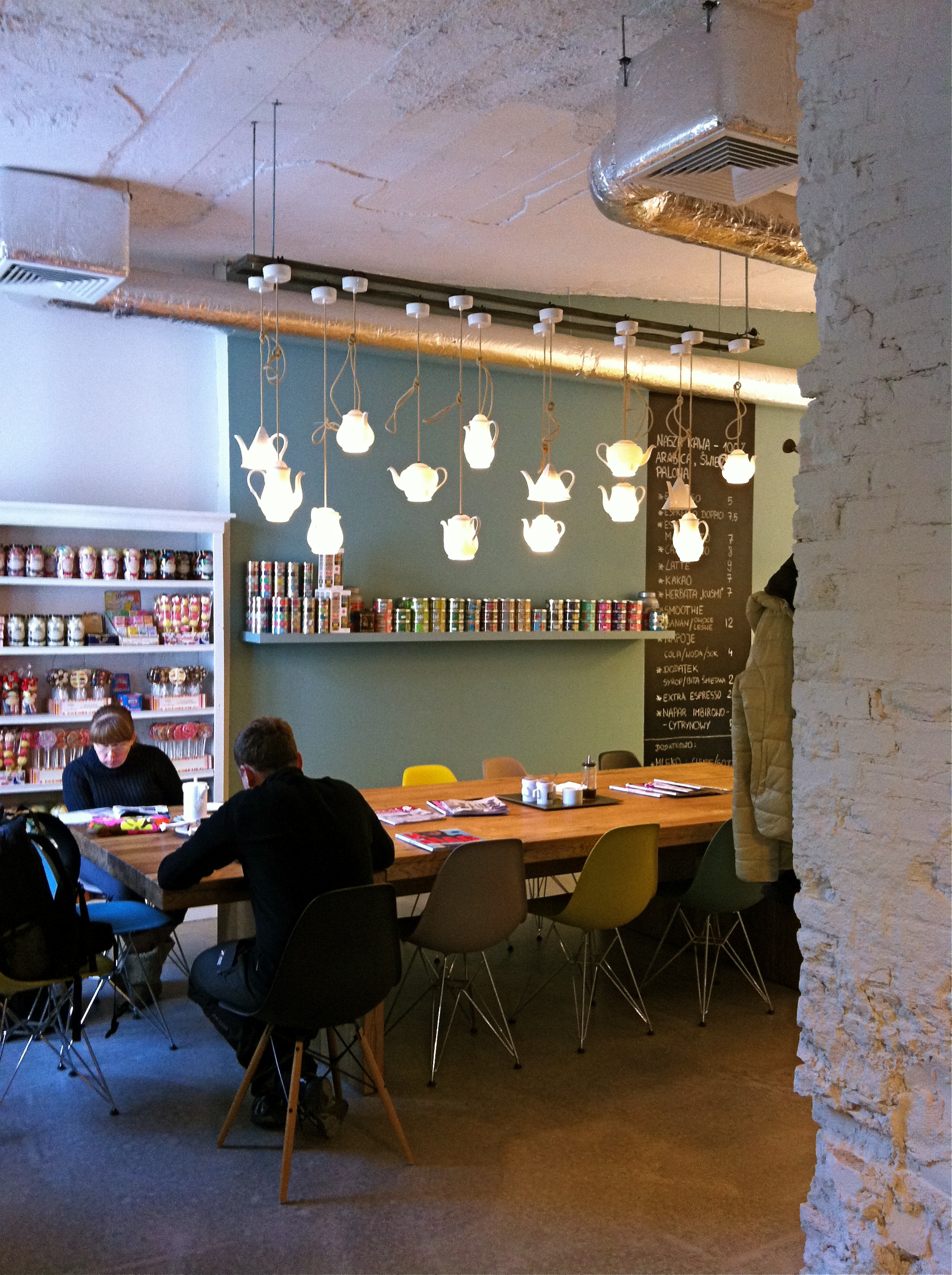 Red Onion è anche un caffé con uno splendido angolo appartato con un bel tavolo lungo illuminato con lampade sui generis ed un angolo caffetteria curatissimo nei dettagli, nulla è fuori posto e nessun oggetto è casuale; strabelli i barattoli per le caramelle!